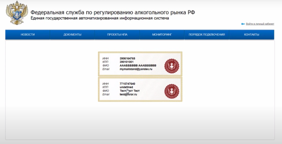 Чтобы зарегистрироваться в ЕГАИС, потребуется войти в личный кабинет на порталеegais.ru.