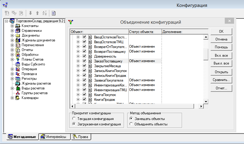 Поэтому пришлось запустить объединение конфигураций (в режиме замещения):