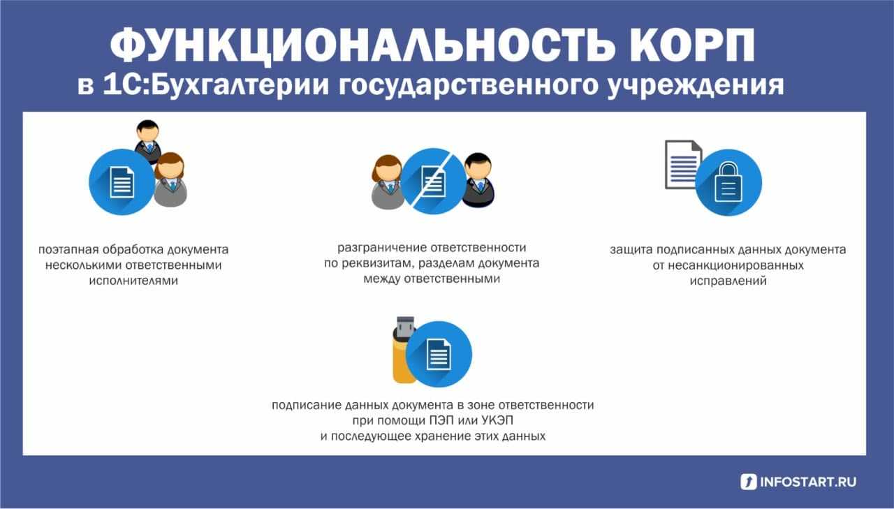 Функциональные возможности «1С:Бухгалтерия государственного учреждения КОРП»