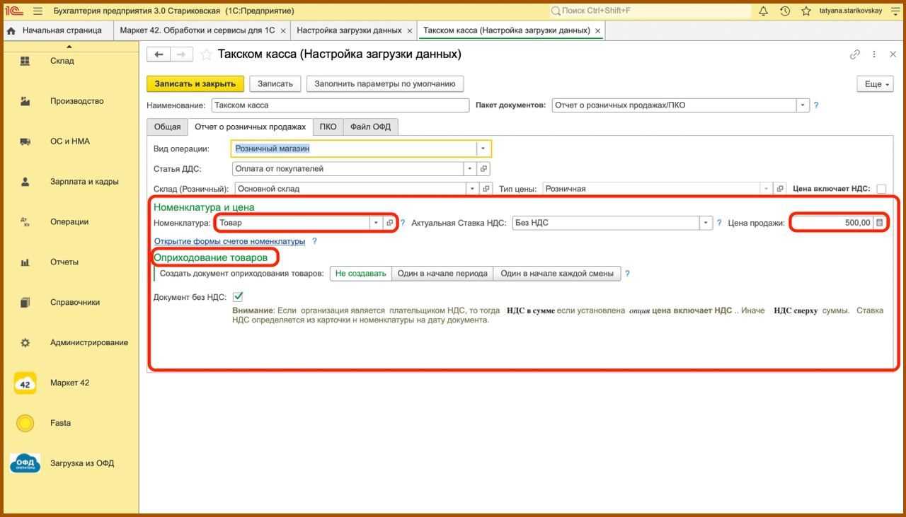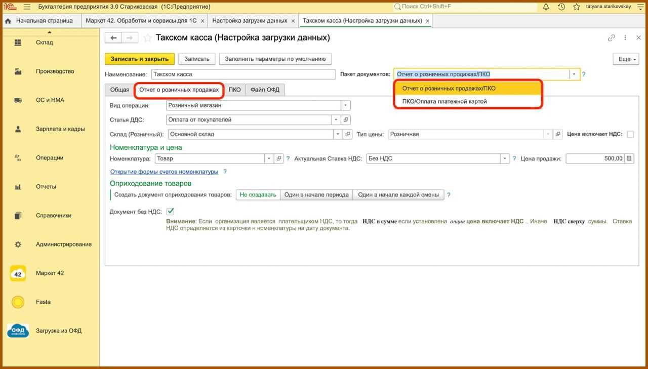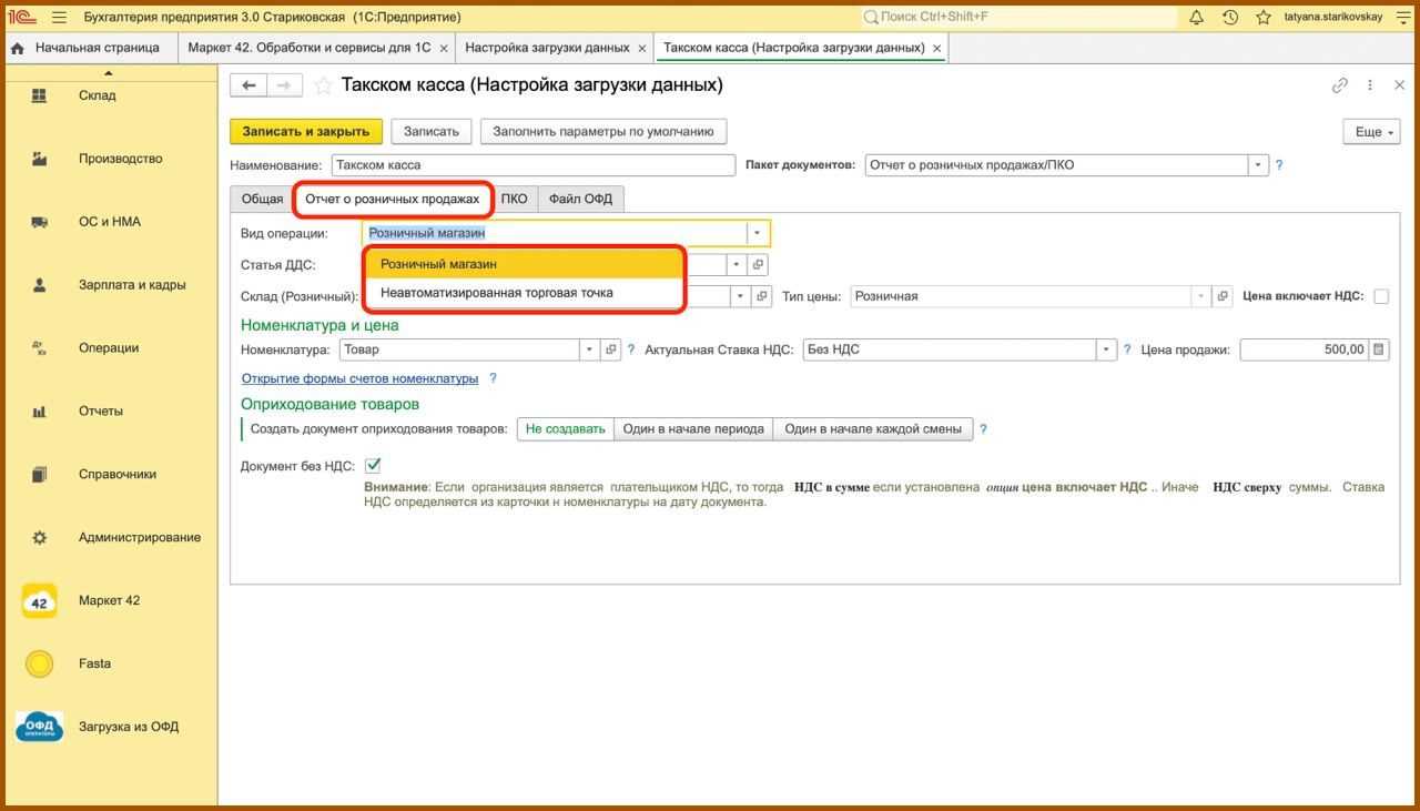 Для загрузки отчета о розничных продажах из ОФД в 1С необходимо выполнить следующие действия: