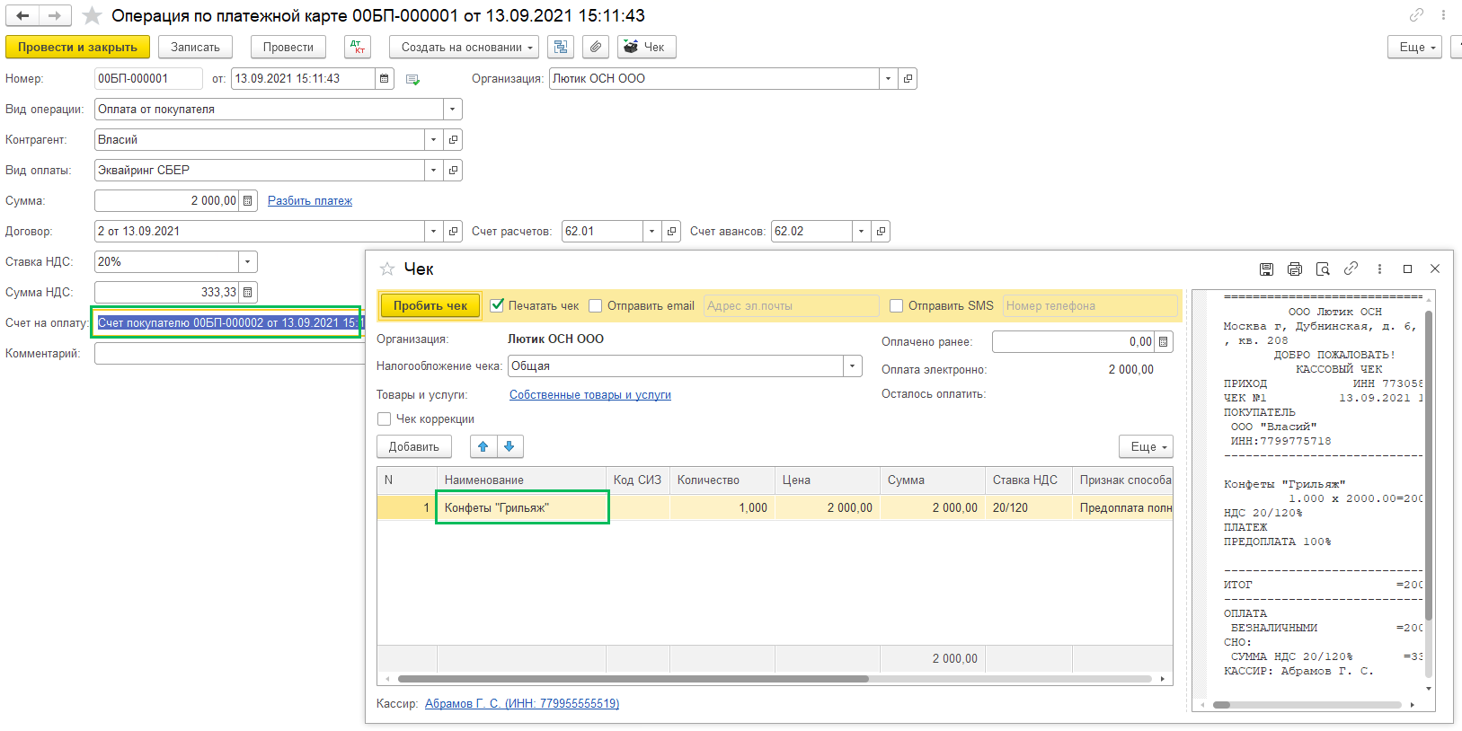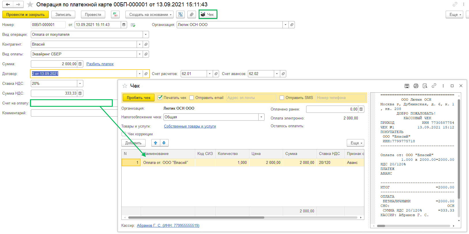 Порядок оформления операции в программе 1С при подключении ККМ offline