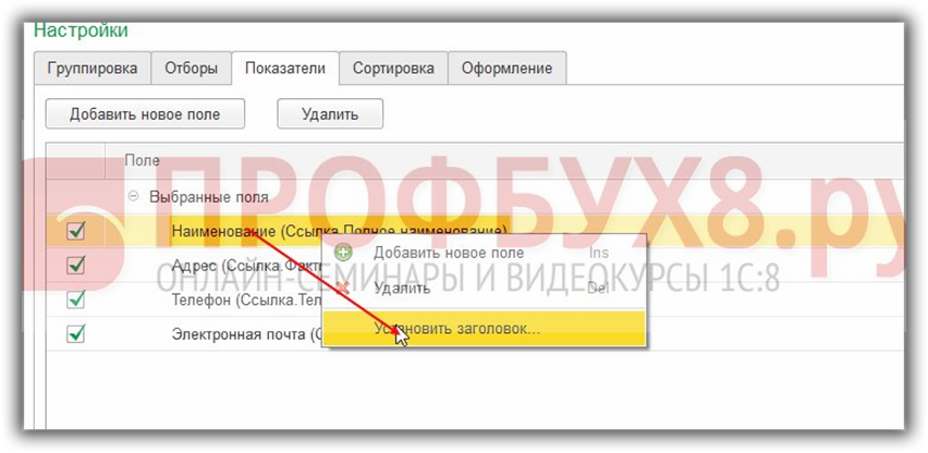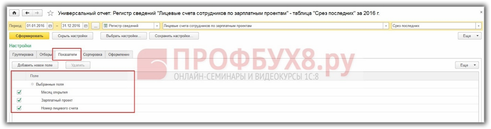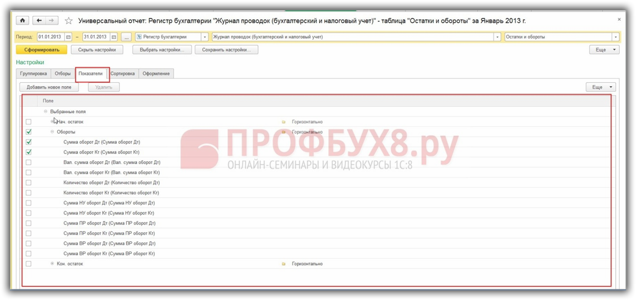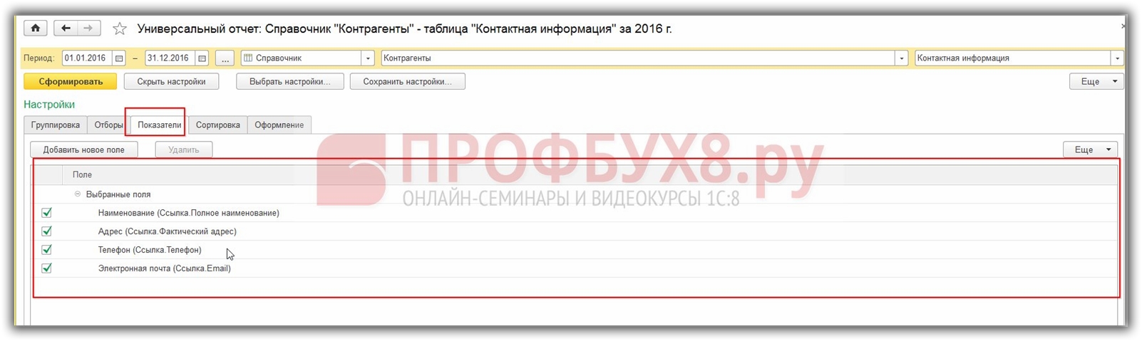 Шаг 3. Как настроить универсальный отчет в 1С 8.3