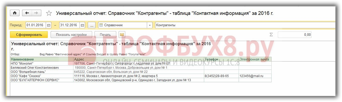 Инструкция по работе с Универсальным отчетом в 1С 8.3