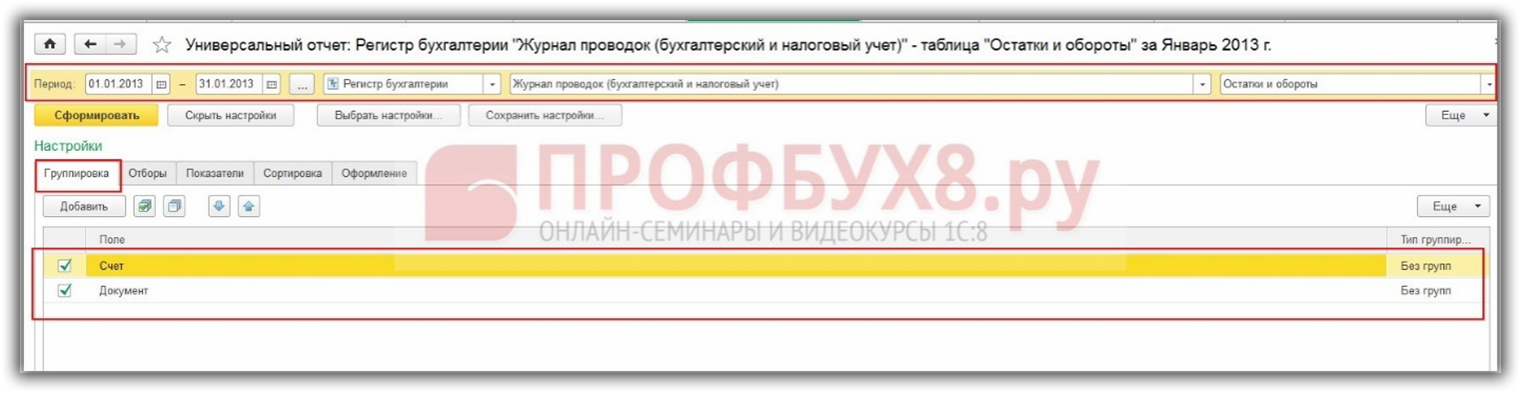 Шаг 5. Как пользоваться Универсальным отчетом в 1С 8.3