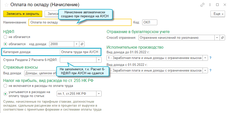 Добавлена возможность учитывать начисление зарплаты при переходе на АУСН.