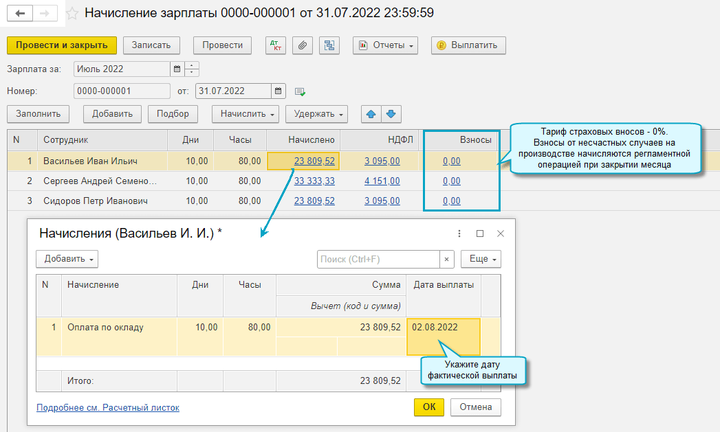 Датой фактического получения дохода для НДФЛ признается дата перечисления дохода сотрудникам. При расчете НДФЛ предоставляются только стандартные и профессиональные вычеты (статья 17 Федерального закона от 25.02.2022 № 17-ФЗ).