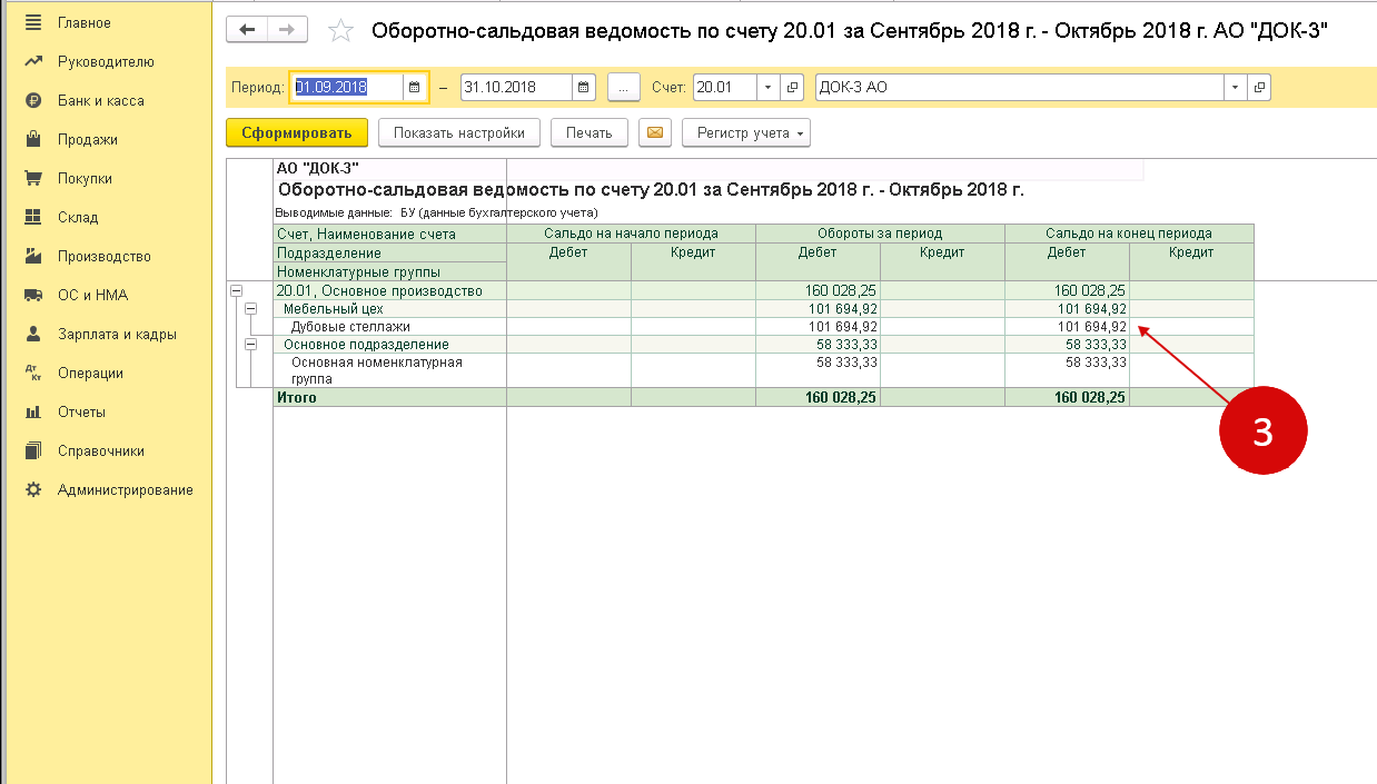 Если в 1С 8.3 Бухгалтерия 3.0 не закрывается 20 счет, то возможно причина в том, что не было выпуска продукции. В таком случае счет 20 закроется в следующих периодах, когда будет оформлен выпуск продукции. Если в определенном периоде в производство передали материалы, но не было выпуска продукции, возникает остаток на счете 20, или другими словами незавершенное производство. В оборотно-сальдовой ведомости вы увидите этот остаток как сальдо по дебету счета 20 на конец месяца (3).