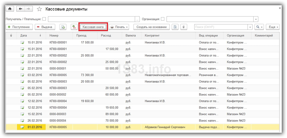 Работа с кассовой книгой в 1С 8.3 и отчет кассира