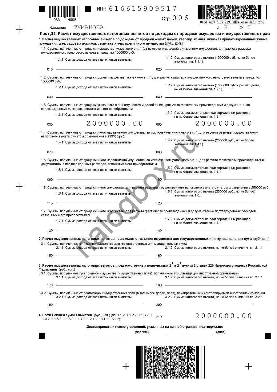 Пункт 2 и 3 заполнять не нужно. В пункте 2 необходимо заполнить сведения при заполнении 3-НДФЛ при продаже автомобиля и иного имущества. В пункте 4 указываются итоговое значение суммы вычетов, при продаже квартиры оно будет соответствовать значению в поле 100.
