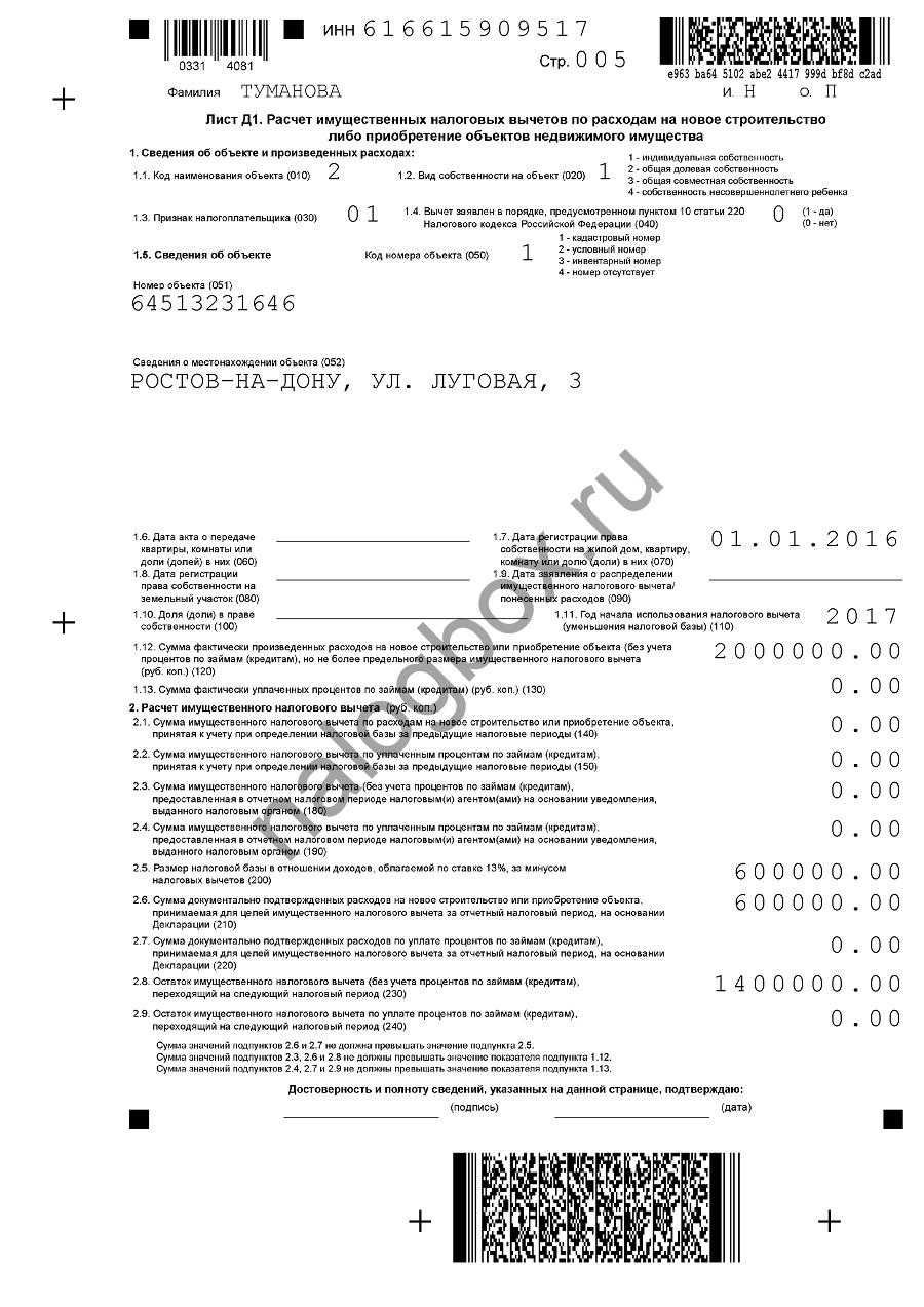 Как будет выглядеть первый вариант декларации после продажи квартиры:
