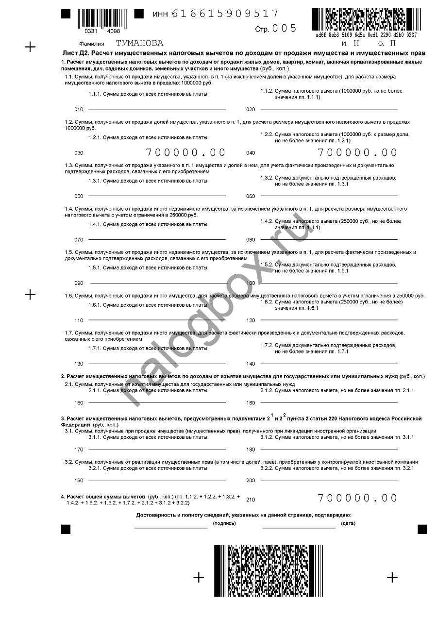 Пошаговое заполнение декларации 3-НДФЛ при продаже квартиры по второму варианту:
