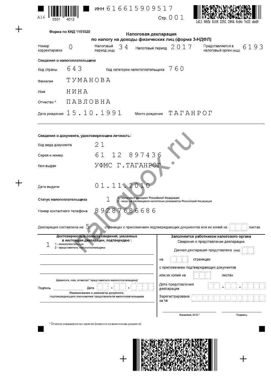 Образец заполнения 3-ндфл при продаже квартиры менее 3 лет