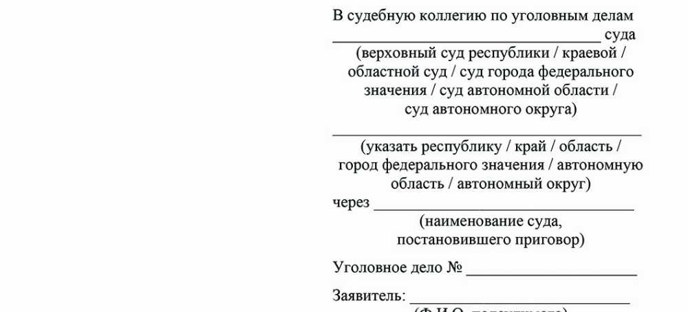 Образец заявления Образец жалобы на приговор суда в
