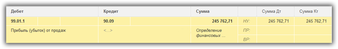 Как видим, полученный убыток за декабрь признан в качестве отложенного налогового актива. Финансовый результат в проводках за месяц составил 245 762,71 р.: