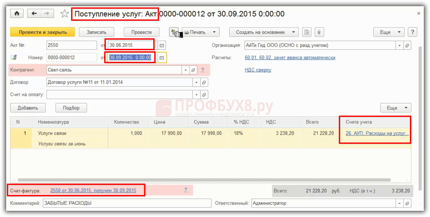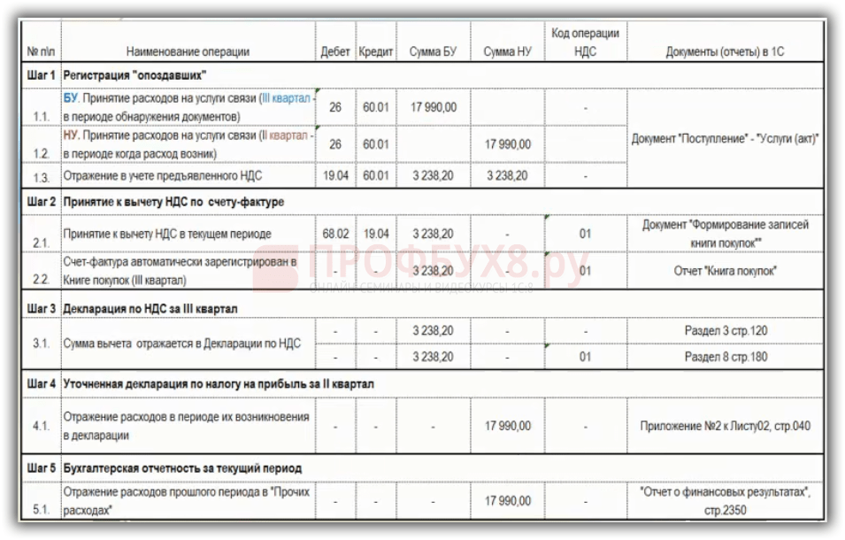 Смоделируем ситуацию, когда забыли внести расходную накладную, и нет факта подтверждения принятия первичных документов в III квартале. То есть документ поступил во II квартале, но забыли учесть во II квартале.
