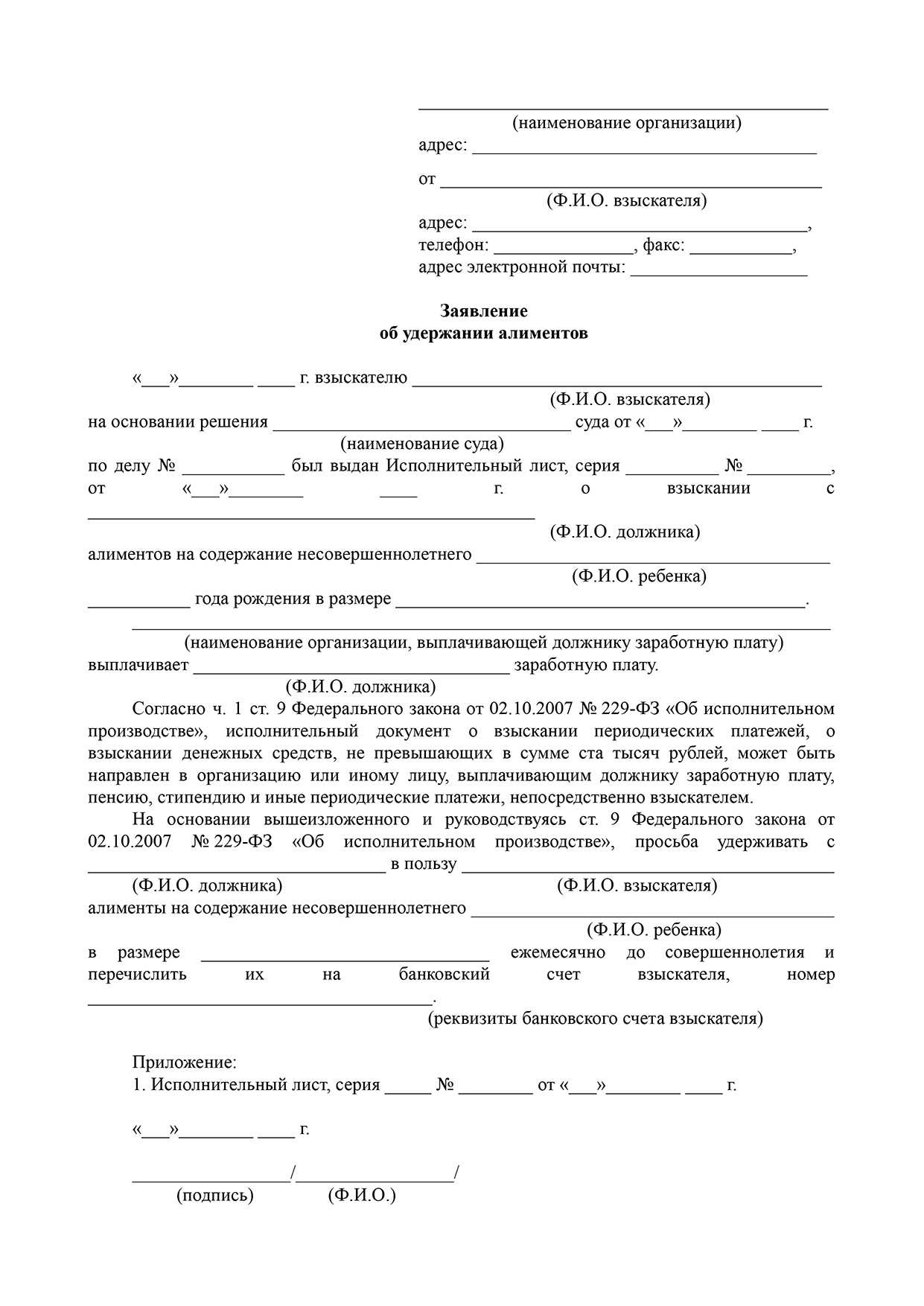 При обычном течении дел в случае с работающими людьми, решение суда направляется работодателю. Ниже вы сможете скачать файл – образец заявления об удержании алиментов на основании исполнительного листа. Бухгалтерия удерживает зарплату по исполнительному листу. А здесь бухгалтер не участвует. Поэтому важная фигура – пристав. Он должен подать документы в банк, куда поступают платежи по договорам ГПХ. Но это может сделать и сам взыскатель, если у него есть время и силы заниматься после развода техническими тонкостями. В банке снимают деньги со счета должника и перечисляют взыскателю.