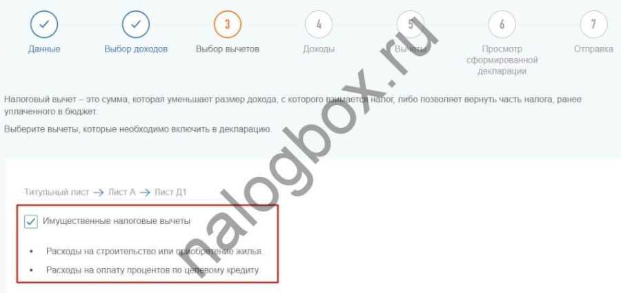 После этого вам нужно указать использованные части вычета.