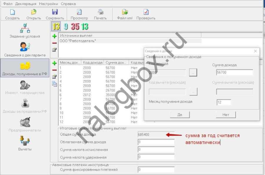 Переходите к окну о доходах.