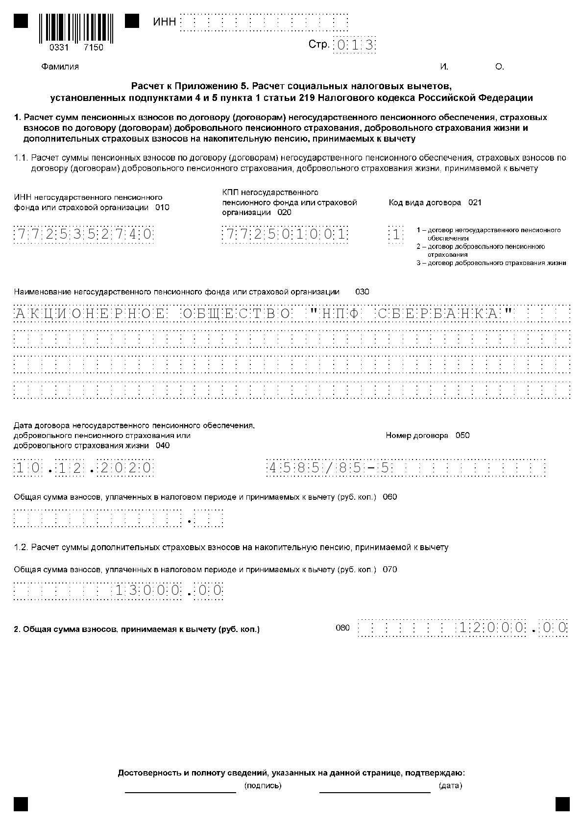 10 декабря 2020 года Андрей Юрьевич заключил договор негосударственного пенсионного обеспечения с АО «НПФ СБЕРБАНКА», общая сумма взносов, уплаченных в 2020 году по данному договору, составила 12 тыс. руб.