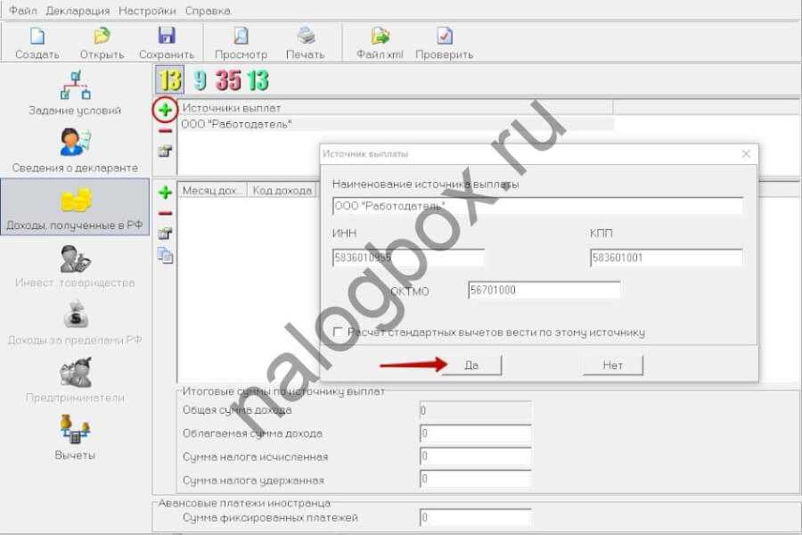 Ставка остается установленная по умолчанию — 13%. Добавьте источник — нажмите на символ «+».