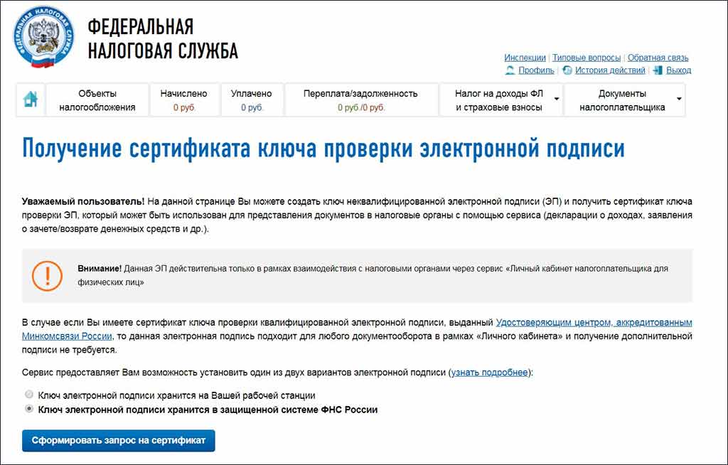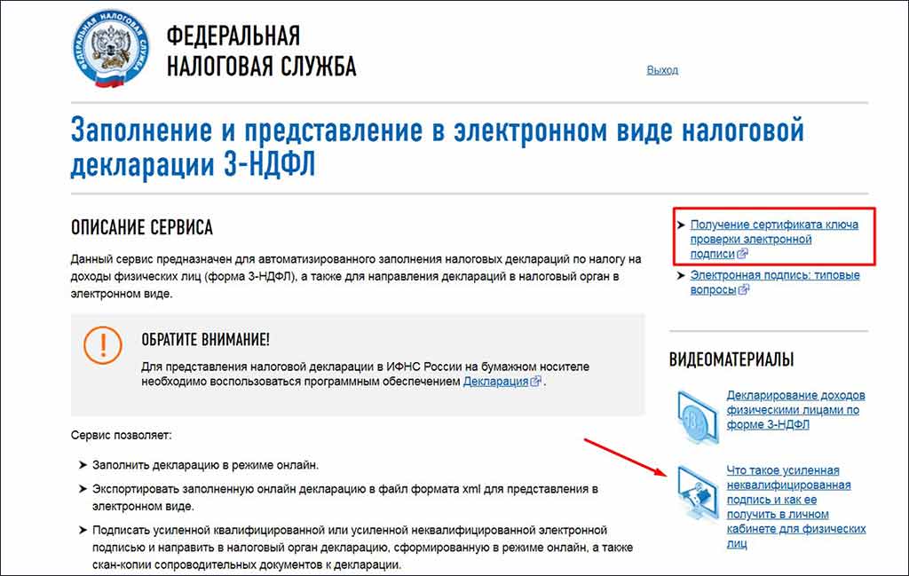 Чтобы сдать декларацию понадобится электронный ключ. Если у вас его нет — можно тут же создать. Выпуск занял у меня пять минут. Если что, здесь же есть видео, в которых рассказывают, что это и как его сделать. На самом деле все интуитивно понятно, но скриншоты все-таки приложу.