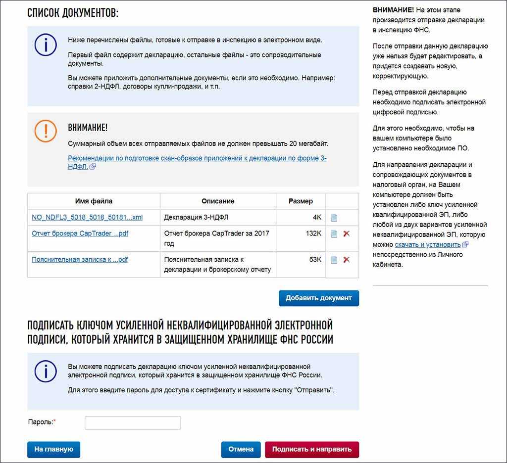Осталось только прикрепить дополнительные подтверждающие документы и подписать пакет.