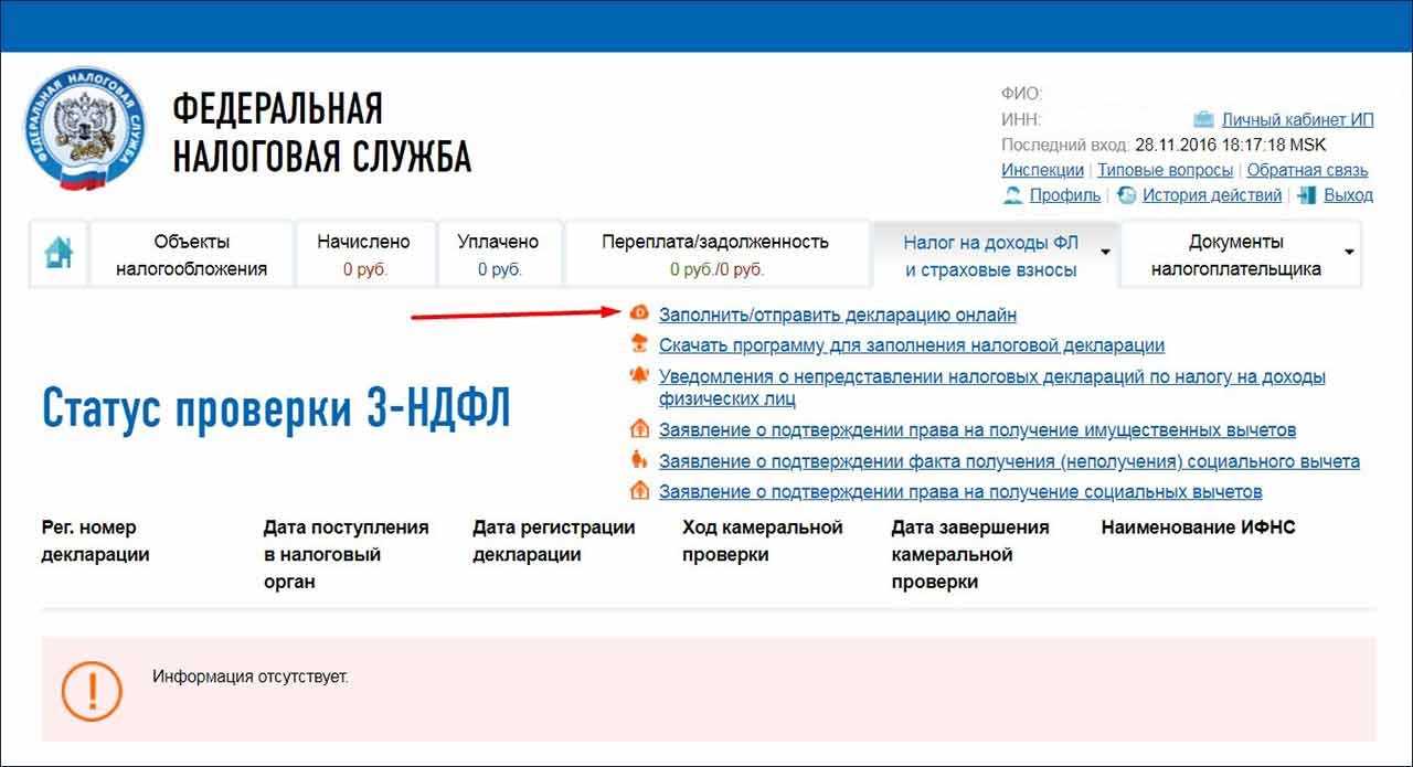 - Заполнить декларацию онлайн.