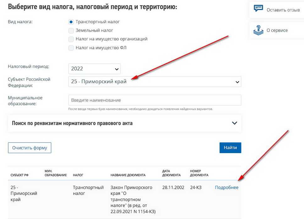 Поскольку транспортный налог считается региональным, то и льготы устанавливаются властями субъектов РФ. Узнать, какие послабления есть в вашем регионе можно в Справке на сайте ФНС. Для этого выберите субъект РФ и нажмите «Найти» – система отобразит нормативно-правовой документ для вашего региона, где урегулированы налоговые вопросы по ТН.